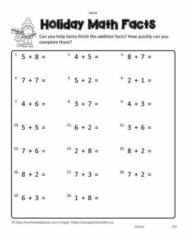 Addition Facts Worksheets - Math Worksheets 4 Kids Sail through this myriad collection of addition facts worksheets that contain a number of colorful and theme-based handouts to make little ones understand addition facts from 0 through 9 for sums up to 10 and 20.